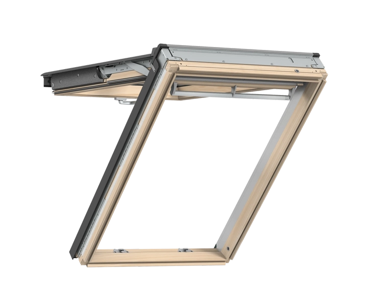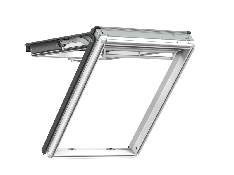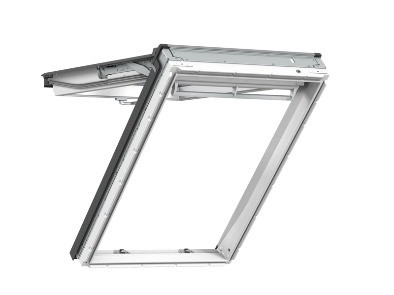 VELUX Klapp-Schwing-Fenster mit Untenbedienung lassen sich ganz bequem mit dem Öffnungsgriff am unteren Rand des Fensterflügels öffnen und schließen. Der Fensterflügel bleibt als schützendes Dach über der Öffnung.