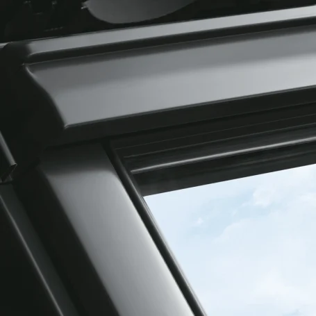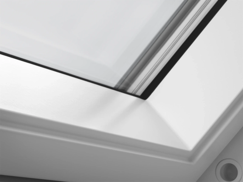Flügel und Blendrahmen bestehen aus einem Holzkern, der nahtlos mit Kunststoff (Polyurethan) umgossen ist. Durch den abschließend aufgetragenen sehr hochwertigen 2-Komponenten-Lack (ähnlich RAL 9003) haben VELUX Kunststoff-Fenster eine besonders hohe Oberflächenqualität, sind kratzfest und haben eine extrem lange Lebensdauer.