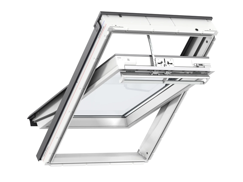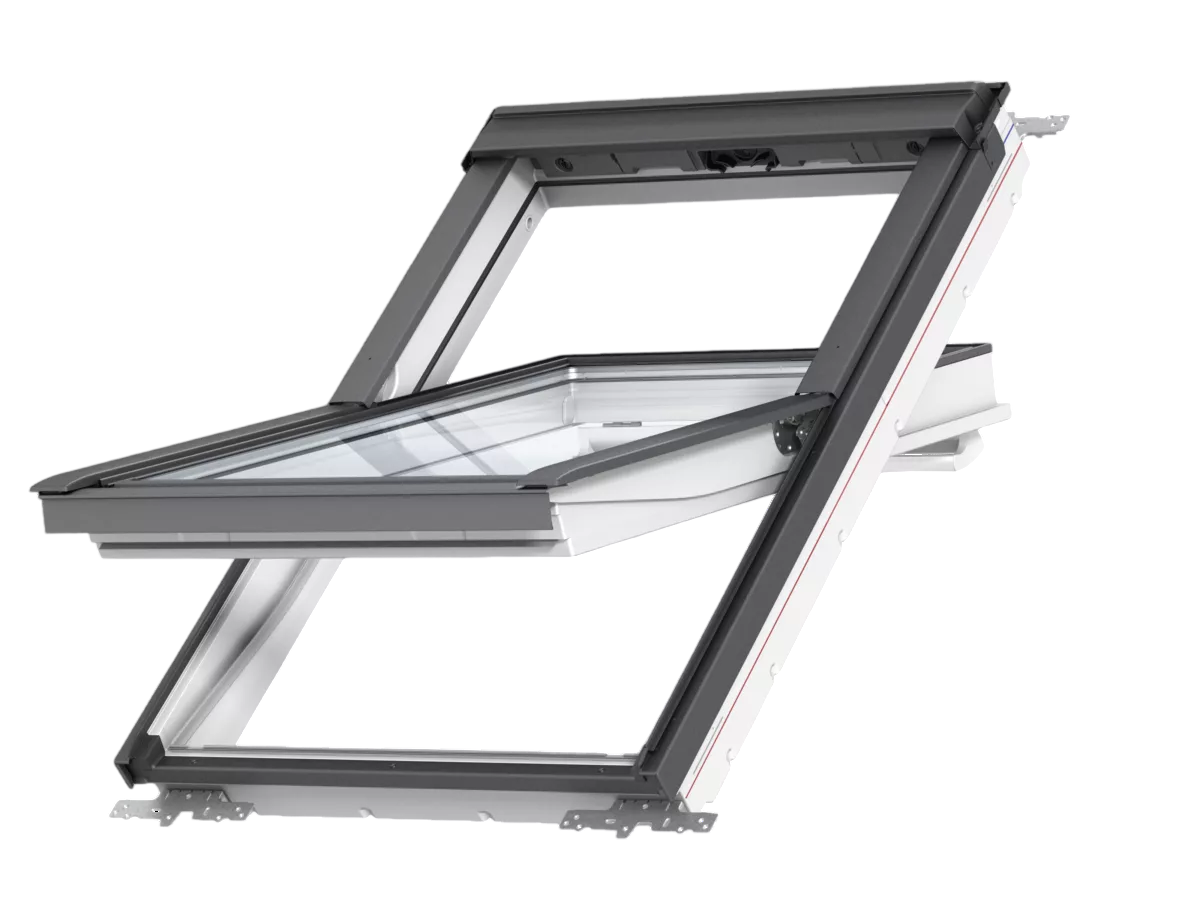 Flügel und Blendrahmen bestehen aus einem Holzkern, der nahtlos mit Kunststoff (Polyurethan) umgossen ist. Durch den abschließend aufgetragenen sehr hochwertigen 2-Komponenten-Lack (ähnlich RAL 9003) haben VELUX Kunststoff-Fenster eine besonders hohe Oberflächenqualität, sind kratzfest und haben eine extrem lange Lebensdauer.